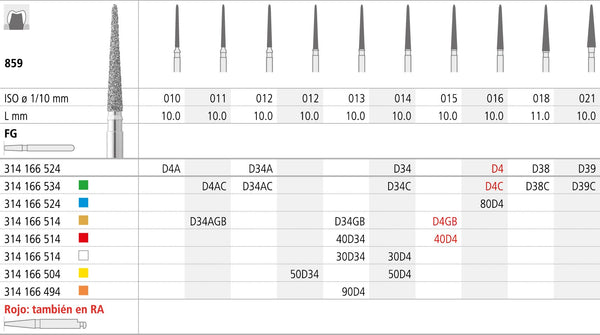 Fresa Diamantada Lanza FG 30D4/6 859-014 FG DIAM. FINO 6U.