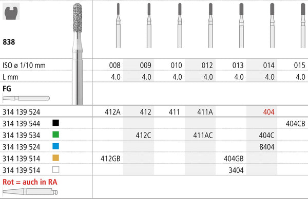 Fresa Diamantada Cilíndrica FG 404/6 838-014 FG DIAM. MEDIO 6U.