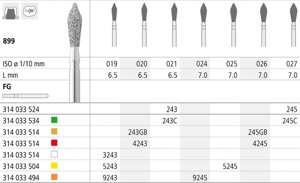 Fresa Diamantada Tonel con punta FG 4243/6 899-020 FG DIAM. FINO 6U.