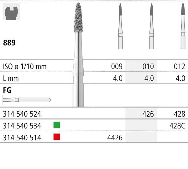 Fresa Diamantada Aguja FG 4426/6 889-009 FG DIAM. FINO 6U.