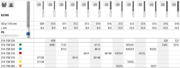 Fresa Diamantada Cilíndrica FG 8305LP/6 837KR-013 FG DIAM. MEDIO 6U.