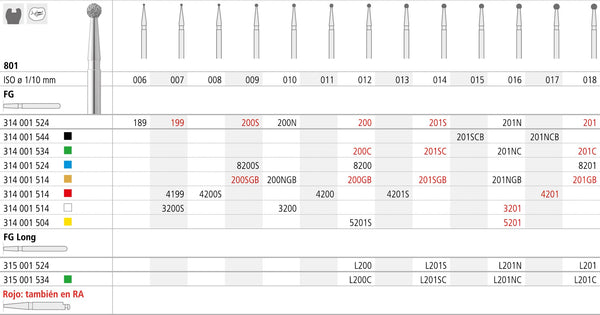 Fresa Diamantada Redonda FG 4200/6 801-011 FG DIAM. FINO 6U.