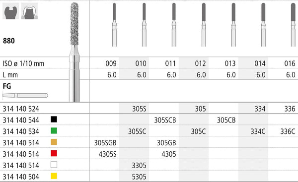Fresa Diamantada Cilíndrica Punta Roma FG 305/6 C 880-012 FG DIAM. GRUESO 6U.