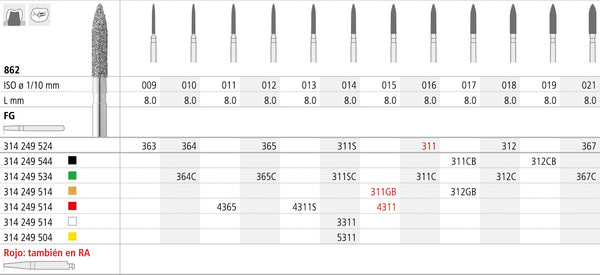 Fresa Diamantada Llama FG 312/6 C 862-018 FG DIAM. GRUESO 6U.