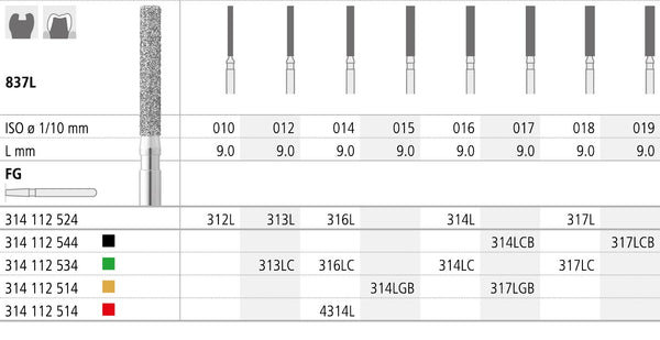 Fresa Diamantada Cilíndrica FG 313L/6 C 837L-012 FG DIAM. GRUESO 6U.