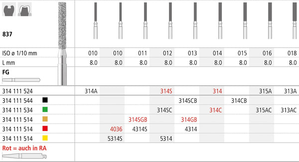 Fresa Diamantada Cilíndrica FG 314S/6 C 837-012 FG DIAM. GRUESO 6U.