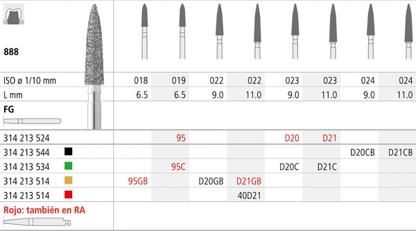 Fresa Diamantada Llama FG 95/6 C 888-019 FG DIAM. GRUESO 6U.