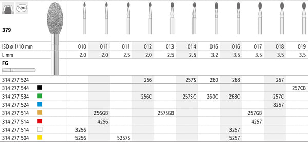 Fresa Diamantada Huevo FG 257/6 CB 379-019 FG DIAM. S-GRUESO 6U.