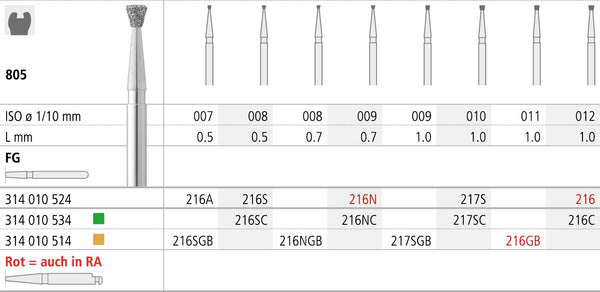Fresa Diamantada Troncocónica Invertida FG 217/6 GB 805-013 FG DIAM. FINO 6U.