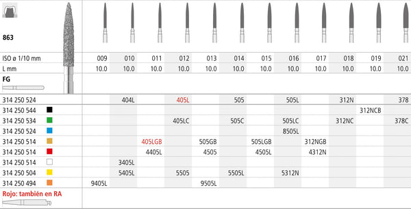 Fresa Diamantada Llama FG 505L/6 GB 863-015 FG DIAM. FINO 6U.