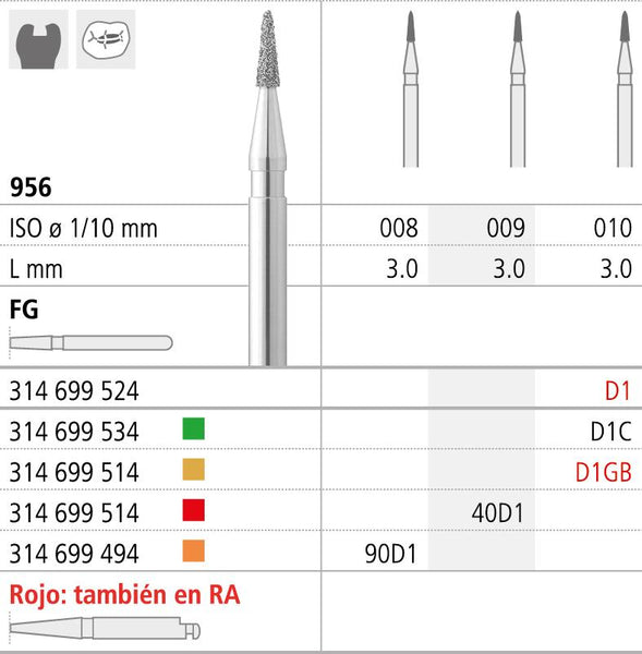 Fresa Diamantada Aguja FG D1/6 GB 956-010 FG DIAM. FINO 6U.